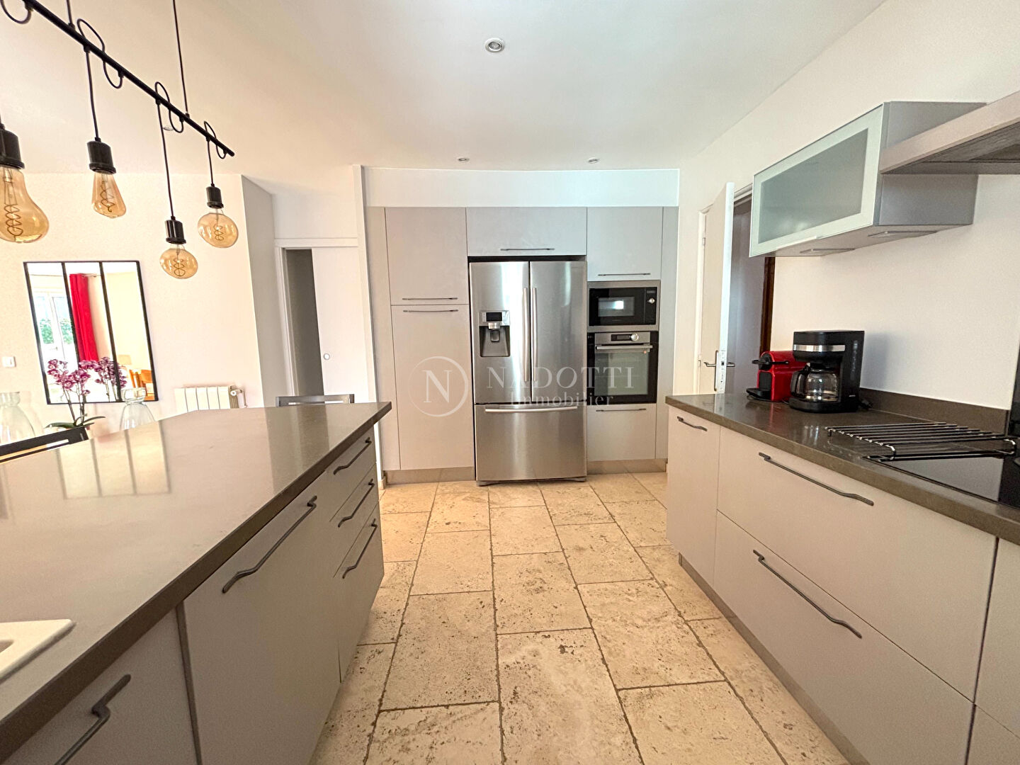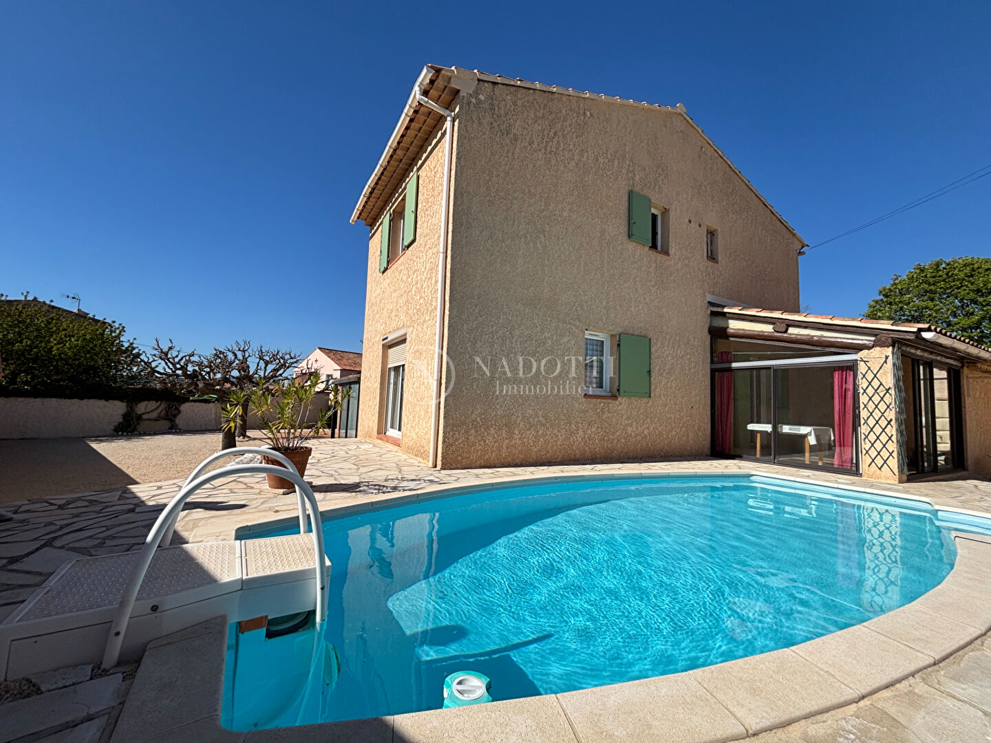 A VENDRE PERTUIS (84120) Maison de type 7 pièces d'environ 176m2 avec piscine et garage. Dans un quartier calme et recherché de Pertuis, proche des commodités et écoles à pied, l'agence Nadotti Immobilier Cadenet vous propose de découvrir cette maison de construction traditionnelle en très bon état général. Elle se compose au rez de chaussée d'une entrée, d'une belle pièce à vivre lumineuse avec cuisine ouverte, de deux chambres dont une de 17m2, d'une salle d'eau et d'un toilette indépendant et d'une véranda. En demi niveau, vous disposerez également d'une chambre, d'une buanderie et d'une véranda. A l'étage vous trouverez 2 chambres climatisées avec rangements, une salle d'eau et un toilette indépendant. En extérieur, vous disposerez d'une piscine et d'un garage de 30m2. Maison avec de belles prestations (piscine avec nage à contre courant, climatisation réversible, insert de 2023, menuiseries PVC double vitrage, portail motorisé, vide sanitaire, adoucisseur, volets aluminium, conformité...) Possibilité d'accueillir deux familles de façon indépendante. A visiter sans tarder. Prix de vente : 519750 euros HAI (dont 24750 euros d'honoraires TTC à la charge de l'acquéreur, soit 5 %). Prix hors honoraires : 495 000 euros