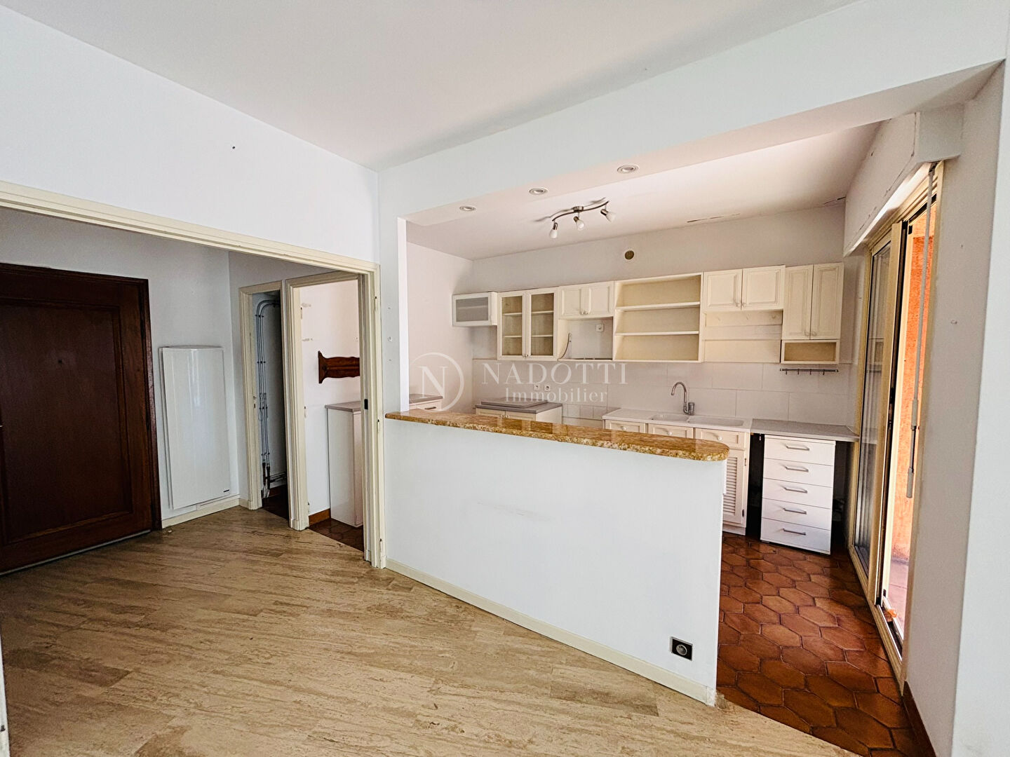 Votre agence de proximité NADOTTI vous propose en exclusivité ce bel appartement T2 bis, baigné de lumière, composé d'une entrée avec placards, d'une pièce de vie de 30m² ouvert sur cuisine américaine aménagée qui donne accès à une petite terrasse couverte idéale pour vos repas estivaux. Enfin une chambre, une salle d'eau et un WC indépendant complètent l'aménagement de ce bien. Une cave est également proposée avec le bien. L'appartement, au 1er étage avec ascenseur est idéalement situé à 2 pas de toutes commodités. A visiter sans tarder. Copropriété de 46 lots - dont 19 lots habitation. Charges annuelles : 1200 euros.