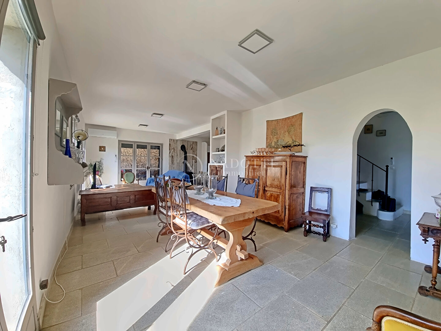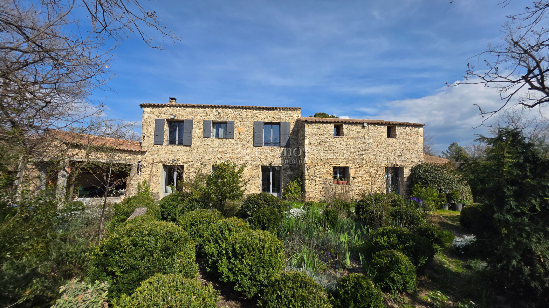 NADOTTI Immobilier, l'agence immobilière du Luberon, vous propose à la vente une maison en pierres, Idéalement située à Gordes, l'un des plus beaux villages de France. Nichée sur un terrain arboré de 1 000 m², elle offre un cadre de vie paisible et provençal. Au rez-de-chaussée, vous découvrirez une entrée accueillante, un séjour, une salle à manger chaleureuse agrémentée d'un poêle à bois, idéal pour vos soirées d'hiver, ainsi qu'un bureau parfait pour le télétravail. La cuisine entièrement équipée, complétée par une arrière-cuisine pratique, apporte confort et fonctionnalité. A l'étage, l'espace nuit se compose de trois chambres lumineuses, de deux salles d'eau, ainsi que d'un dortoir offrant de multiples possibilités d'aménagement. Un garage ainsi qu'une remise pouvant être transformée en suite parentale ou en studio indépendant viennent compléter ce bien rare sur le secteur. Cette maison est une véritable invitation à profiter du charme de la Provence, entre pierre, lumière et nature. A seulement 3.5 km du coeur du village de Gordes et de ses commerces, à environ 45 minutes de la gare TGV d'Avignon ou de l'aéroport international Marseille-Provence. NADOTTI Immobilier, the Luberon real estate agency, offers for sale a stone house ideally located in Gordes, one of the most beautiful villages in France. Nestled on a 1,000 sqm wooded plot, it offers a peaceful and Provençal lifestyle. On the ground floor, you will find a welcoming entrance, a living room, a warm dining room with a wood-burning stove, perfect for winter evenings, and a home office ideal for working from home. The fully equipped kitchen, complemented by a practical utility room, provides comfort and functionality. Upstairs, the sleeping area comprises three bright bedrooms, two bathrooms, and a dormitory offering multiple layout possibilities. A garage and a shed that could be converted into a master suite or an independent studio complete this rare property in the area. This house is a true invitation to enjoy the charm of Provence, where stone, light, and nature intertwine. Just 3.5 km from the heart of the village of Gordes and its shops, about 45 minutes from Avignon TGV station or Marseille-Provence international airport.