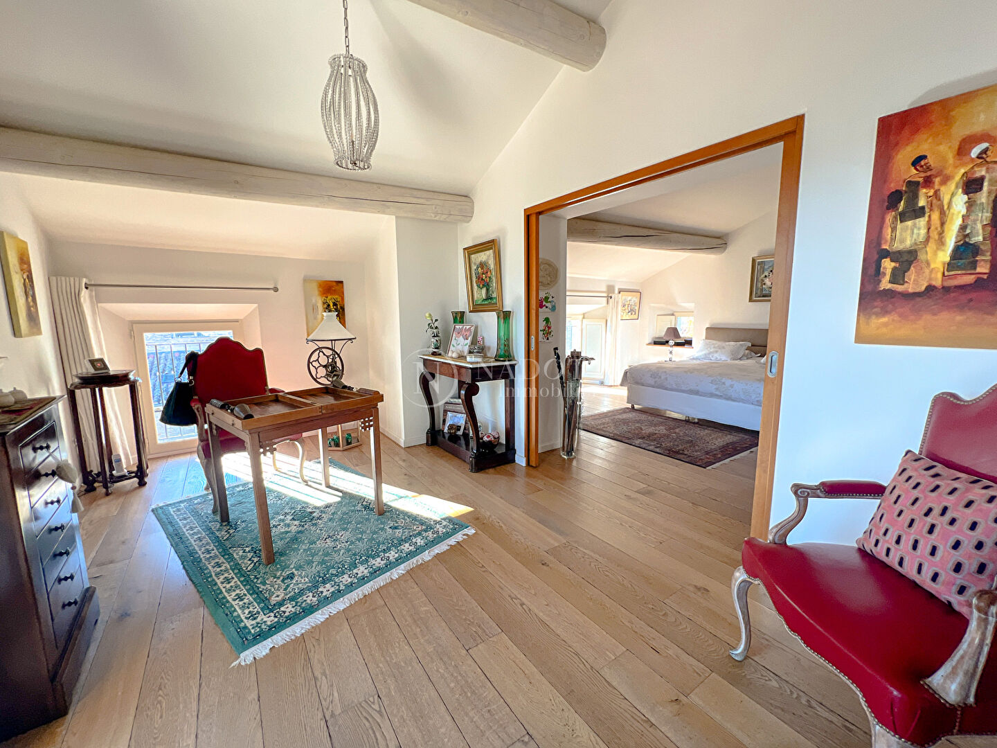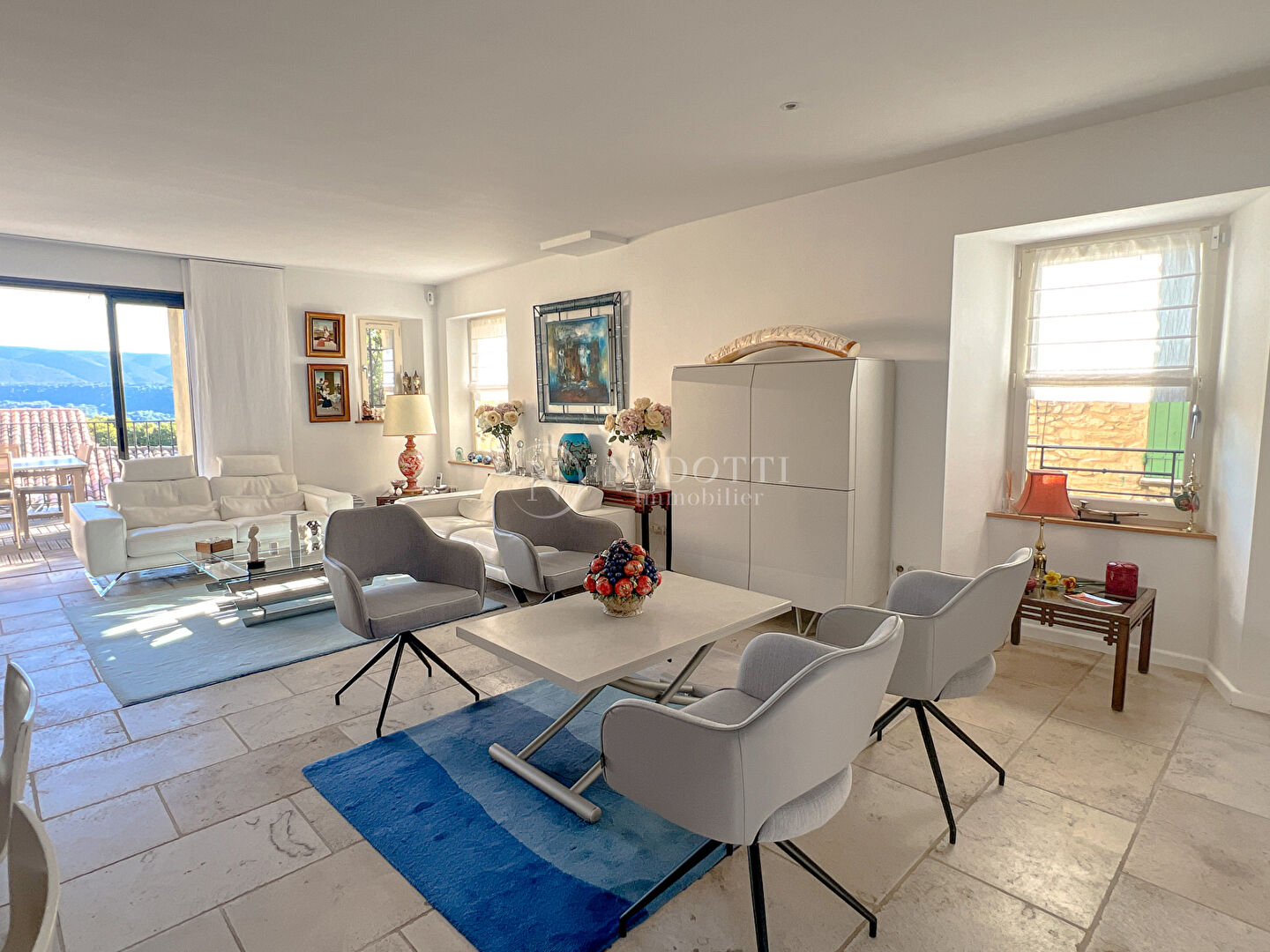 Goult, à 30 mn de l'autoroute A7, 45 mn de la gare TGV d'Avignon et 1 H de l'aéroport de Marseille Marignane. Dans le centre du village, coeur historique, l'agence NADOTTI immobilier vous propose cette magnifique maison de village entièrement rénovée avec goût en 2012, d'une surface de 220 m² environ. Une fois parvenue dans le salon, communiquant avec la cuisine, vous aurez le loisir de vous asseoir dans la véranda pour contempler le village et ses maisons historiques en pierres. Vous pourrez aussi bénéficier de la vue dominante a partir de la terrasse, dans le prolongement du salon. Au premier étage, se trouvent 2 chambres, dont une bénéficiant aussi, d'une vue sur la vallée du Luberon, une salle d'eau et un wc. Au second étage se trouve la suite parentale avec son coin bureau et sa salle d'eau. Vous pourrez garer votre voiture dans le garage fermé qui communique avec la maison. Une buanderie et une cave voûtée complètent la liste des pièces de cette maison unique. Une visite virtuelle est disponible. Goult, 30 minutes from the A7 motorway, 45 minutes from Avignon TGV station and 1 hour from Marseille Marignane airport. In the center of the village, the historic heart, the NADOTTI real estate agency offers you this magnificent village house, completely tastefully renovated in 2012, with a surface area of approximately 220 sqm. Once you arrive in the living room, communicating with the kitchen, you will have the opportunity to sit in the veranda to contemplate the village and its historic stone houses. You can also benefit from the dominant views from the terrace, extending from the living room. On the first floor, there are 2 bedrooms, one of which also benefits from a view of the Luberon valley, a bathroom and a toilet. On the second floor is the master suite with its office area and bathroom. You can park your car in the secured garage which communicates with the house. A laundry room and a vaulted cellar complete the list of rooms of this unique house. A virtual tour is available.