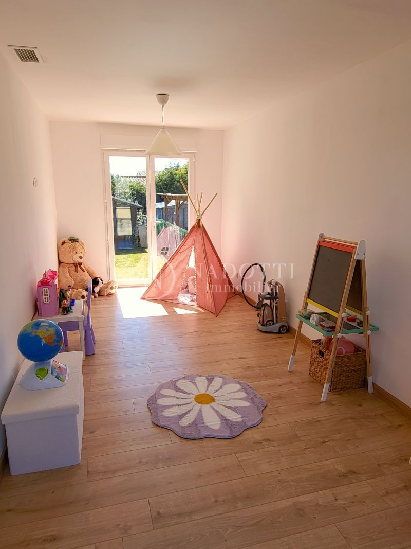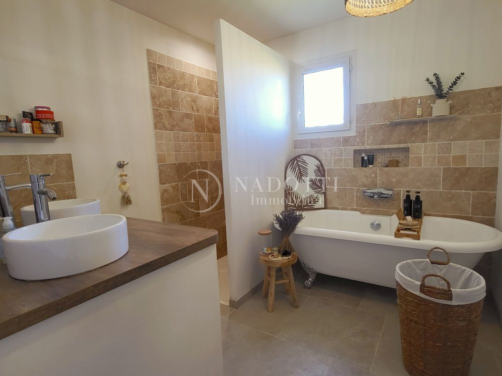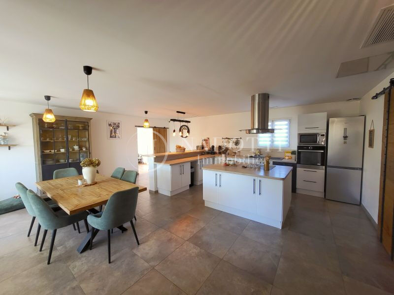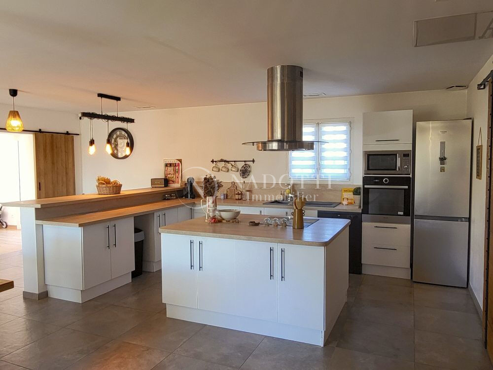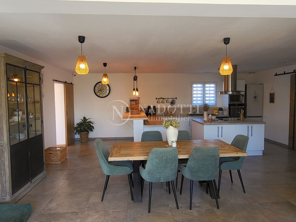 NADOTTI Immobilier : Charmante maison entièrement rénovée, idéalement située à pied du centre-ville du Thor et de ses commerces. Nichée dans une impasse au calme, elle offre un cadre de vie paisible sur une belle parcelle de 725 m² entièrement clôturée. Exposée plein sud, la maison bénéficie d'une belle luminosité tout au long de la journée. Vous découvrirez une spacieuse pièce de vie de 48 m² avec cuisine ouverte, moderne et entièrement aménagée. L'espace nuit comprend quatre chambres ainsi qu'une salle d'eau équipée d'une douche et d'une baignoire, avec WC séparés. Une buanderie/cellier et un garage complètent les prestations. Une cinquième chambre en suite parentale peut facilement être aménagée. Le jardin, agréable et bien entretenu, dispose d'un espace de stationnement pour plusieurs véhicules avec deux portails automatiques. Une pièce indépendante offre également un potentiel pour une activité professionnelle ou un projet personnel et la façade de l'extension est prévue sous une quinzaine de jours afin d'harmoniser le tout . A visiter s'en plus tarder .