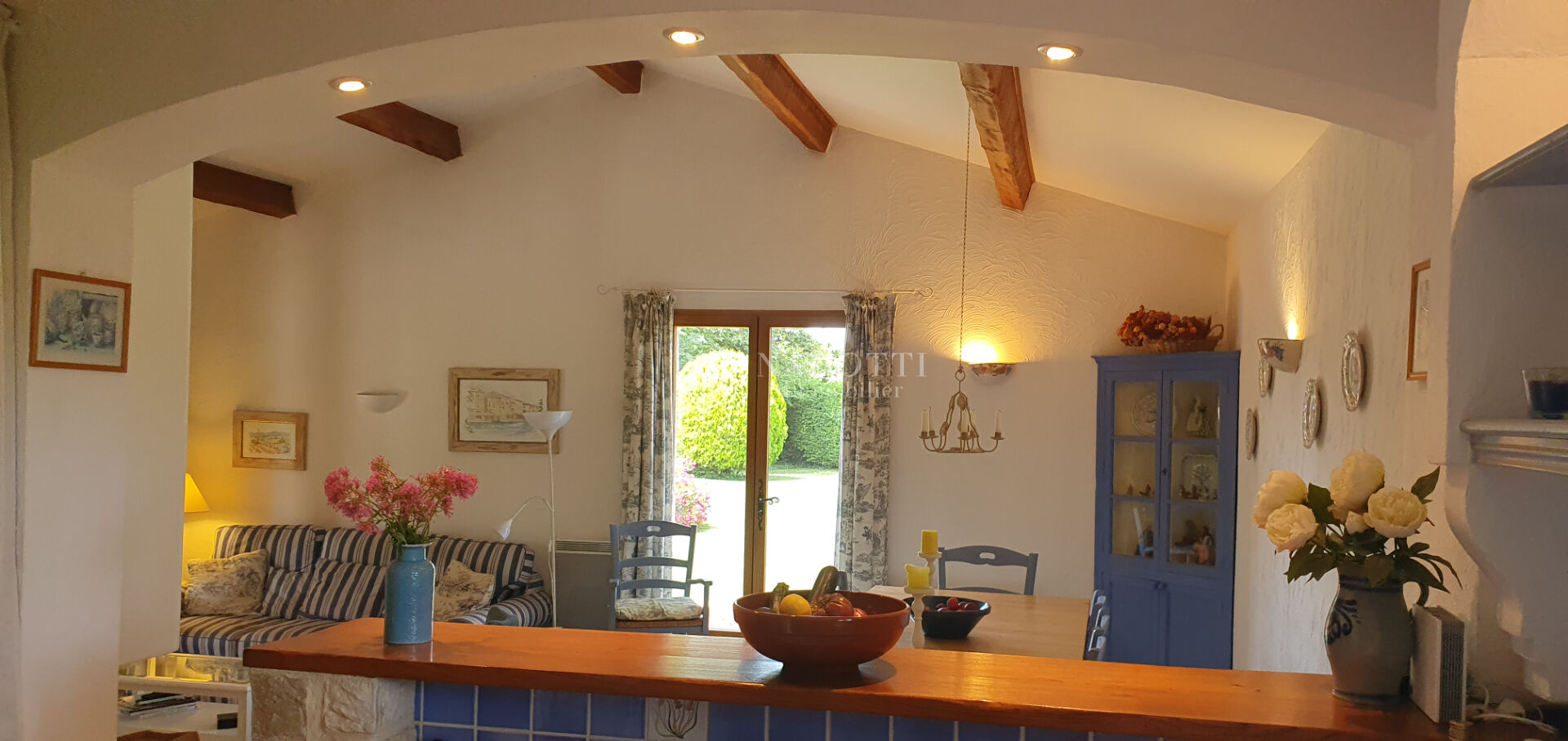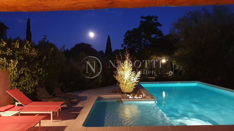 A vendre, sur la commune de l'Isle sur la Sorgue, l'agence NADOTTI Immobilier vous propose cette superbe villa individuelle de 5 belles pièces comprenant au RDC une cuisine équipée de 12 m², un salon de 30 m² , 2 chambres avec salle de bains, un wc, à l'étage 2 autres chambres, une salle d'eau et un wc. Vous trouverez également à l'extérieur un studio de 33 m² indépendant. Niché dans un cadre de verdure idyllique, cette maison vous propose également une belle piscine avec plage immergée, un coin avec jeu de pétanque, un espace jardin très soigné et entretenu. Aucun travaux n'est à prévoir. Vous avez juste à poser vos valises. A 45 mn de la gare TGV, et 45 mn de l'aéroport Marseille Provence. For sale, in Isle sur la Sorgue, the NADOTTI Immobilier agency offers you this superb detached villa with 5 beautiful rooms including on the ground floor a fitted kitchen of 12 sqm, a living room of 30 sqm, 2 bedrooms with bathroom, a toilet, upstairs 2 other bedrooms, a shower room and a toilet. You will also find outside an independent studio of 33 sqm. Nestled in an idyllic green setting, this house also offers you a beautiful swimming pool with a beach, a corner to play pétanque a very neat and maintained garden area. No work is required. You just have to put down your suitcases. 45 minutes from the TGV station, and 45 minutes from Marseille Provence airport.