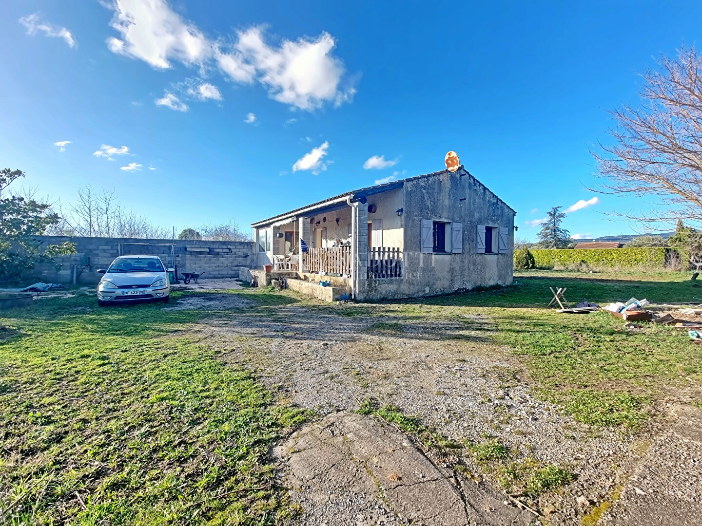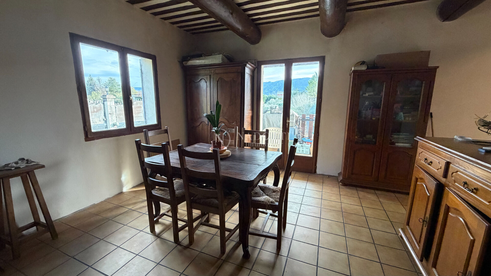 Située sur la commune de Maubec, à proximité immédiate de Coustellet et de toutes les commodités, cette maison bénéficie d'un environnement campagne particulièrement agréable et paisible. Implantée sur un vaste terrain entièrement clôturé et arboré, elle offre un cadre de vie typiquement provençal, avec une belle vue dégagée sur le Luberon et une exposition idéale pour profiter du soleil toute l'année. Construite en 1992, cette maison de plain-pied développe actuellement 82 m² habitables, avec la possibilité d'agrandir l'existant jusqu'à 50 %, portant la surface totale potentielle à 123 m² habitables. Un véritable atout pour adapter le bien à vos projets futurs. L'intérieur se compose d'une pièce de vie chaleureuse et lumineuse, agrémentée d'une cheminée avec insert et d'un plafond à la provençale qui apporte charme et authenticité. La cuisine ouverte s'intègre harmonieusement à l'espace salon/salle à manger. La partie nuit comprend deux chambres confortables dont une avec bureau, une salle d'eau avec WC. Les prestations incluent du double vitrage, cheminée avec insert, 7 panneaux photovoltaïques pour optimiser la consommation électrique, combles aménageables, offrant un potentiel supplémentaire et une cave pouvant être agrandie (sous réserve de travaux de terrassement) A l'extérieur, le terrain de 2 565 m² constitue un véritable écrin de verdure. Vous profiterez d'une belle terrasse, dont une partie couverte, parfaite pour les repas en extérieur, ainsi que d'une piscine idéale pour savourer les journées estivales en toute intimité. La maison peut être vendue meublée (hors lits), permettant une installation rapide ou une mise en location facilitée. Un bien rare sur le secteur, offrant calme, proximité des commodités, charme provençal et important potentiel d'évolution.
