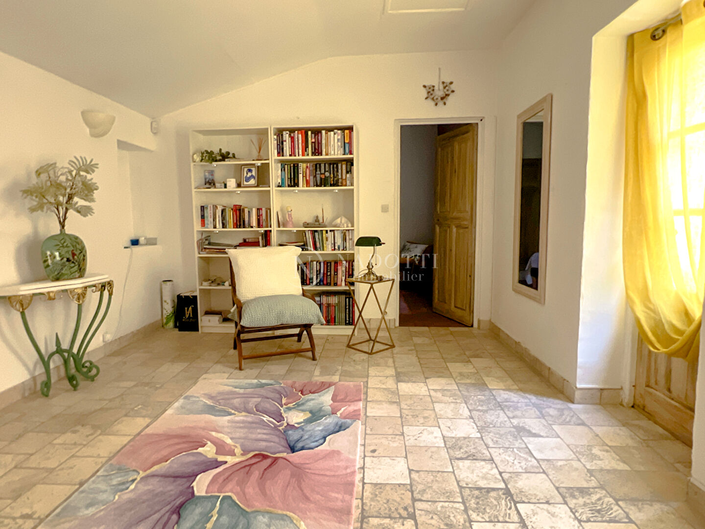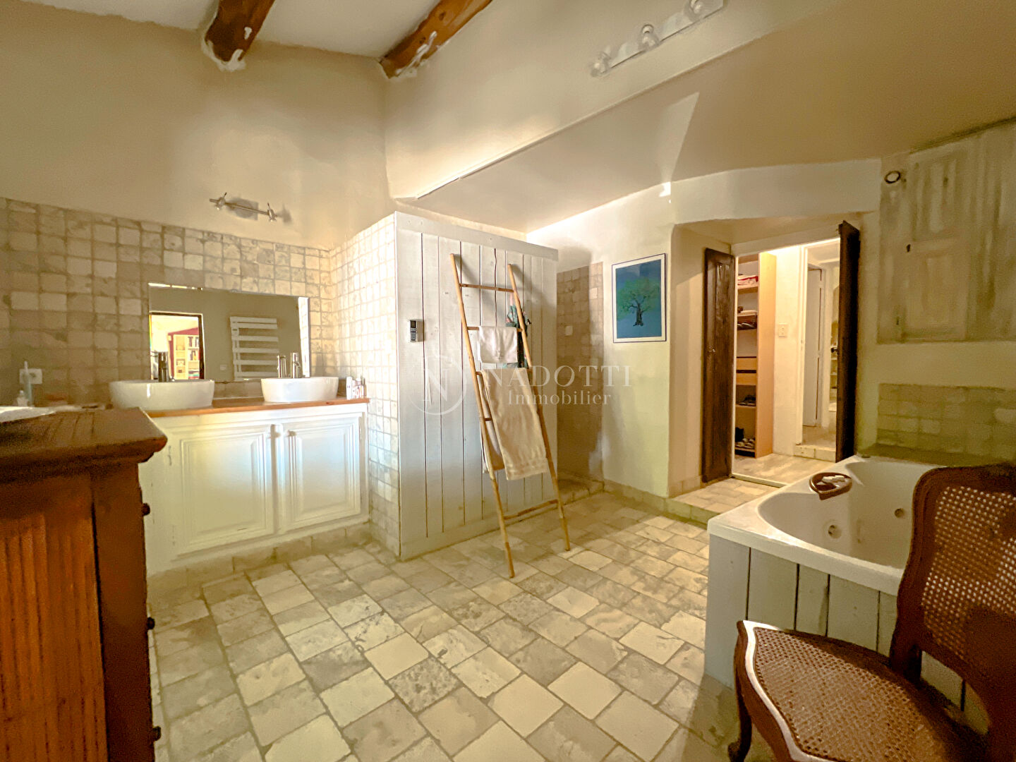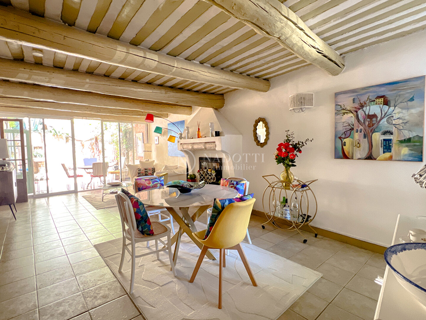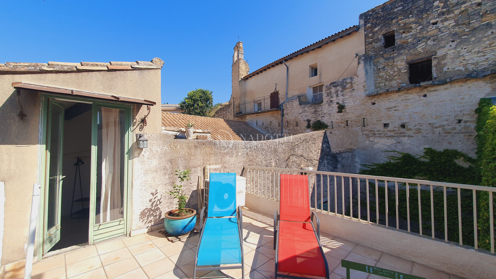 NADOTTI Immobilier propose : Perchée sur les hauteurs de Châteauneuf-de-Gadagne, cette authentique maison de village de 148 m² offre un cadre de vie idyllique. Entièrement rénovée dans le respect des traditions, elle allie charme provençal et confort moderne. Dès l'entrée, une cour intérieure accueille chaleureusement les visiteurs. Au rez-de-chaussée, un bel espace de vie avec cheminée invite à la détente. Le premier étage abrite deux chambres, un bureau et une salle de bains avec douche, agrémentée d'un dressing. Le dernier étage dévoile une chambre lumineuse avec accès direct à une terrasse ensoleillée, idéale pour admirer la vue sur le village. Un garage complète ce bien rare. Située à proximité immédiate des commodités, la maison bénéficie d'un environnement paisible, sans aucune nuisance. Un véritable havre de paix où il fait bon vivre, parfait pour les amoureux d'authenticité et de tranquillité au coeur du Vaucluse.