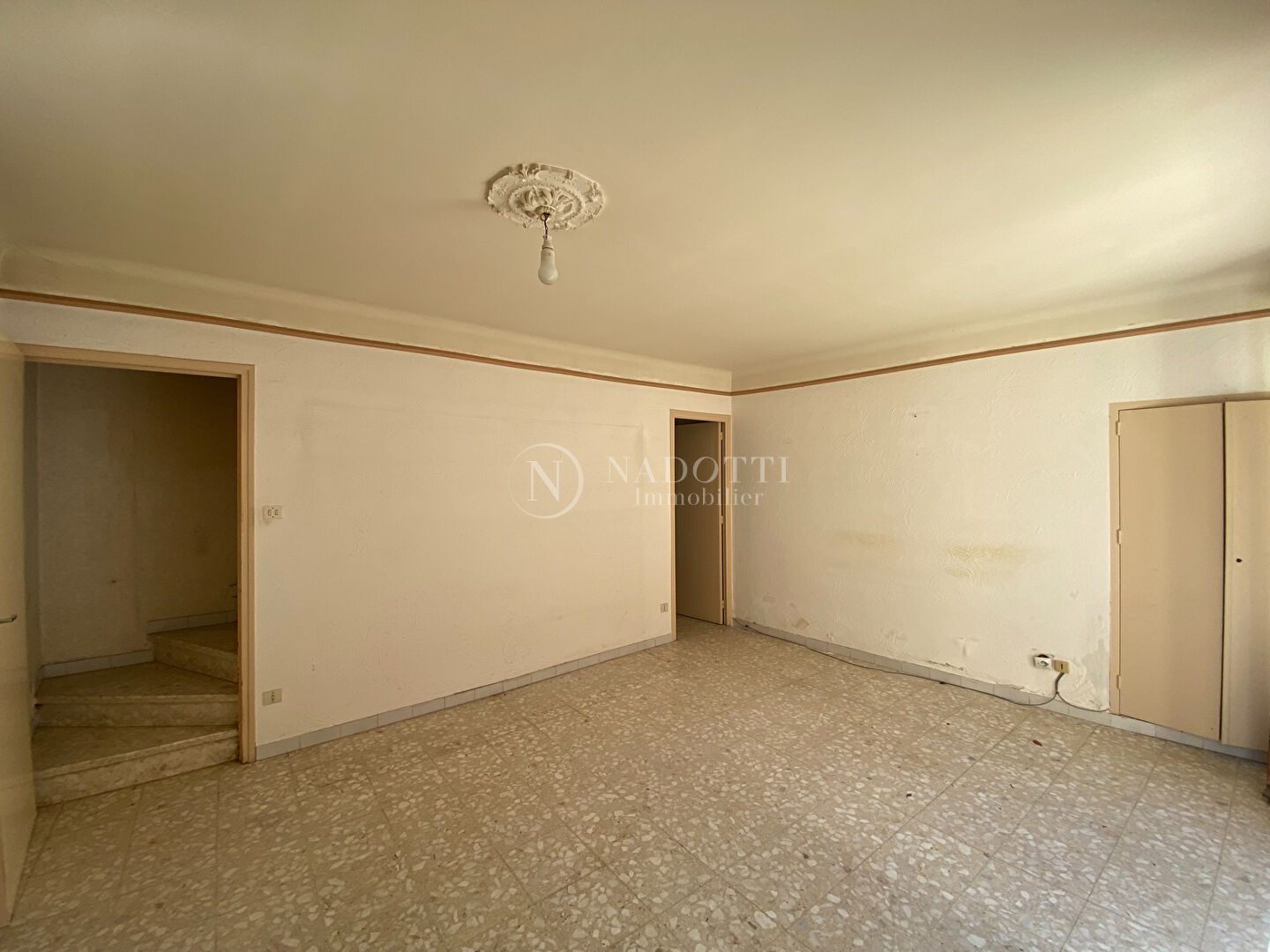 EXCLUSIVITE :Votre agence NADOTTI vous propose cette charmante maison de ville mitoyenne d'u côté d'une surface habitable de 76m² répartie sur 2 niveaux . Elle est située dans un environnement calme tout en étant à deux pas de toutes commodités. En rez de chaussée: cuisine indépendante attenante au salon séjour, une salle d'eau avec WC et une buanderie. Salon et cuisine s'ouvrent sur la grande terrasse, idéale pour vos repas en plein air ou vos moments de détente. A l'étage: 2 chambres spacieuses, et une salle de bains avec wc Cerise sur le gâteau: un grand garage d'environ 30m² rare en centre vile . Quelques travaux sont à prévoir. Contactez nous dès maintenant pour une visite. (7.00 % honoraires TTC à la charge de l'acquéreur.)