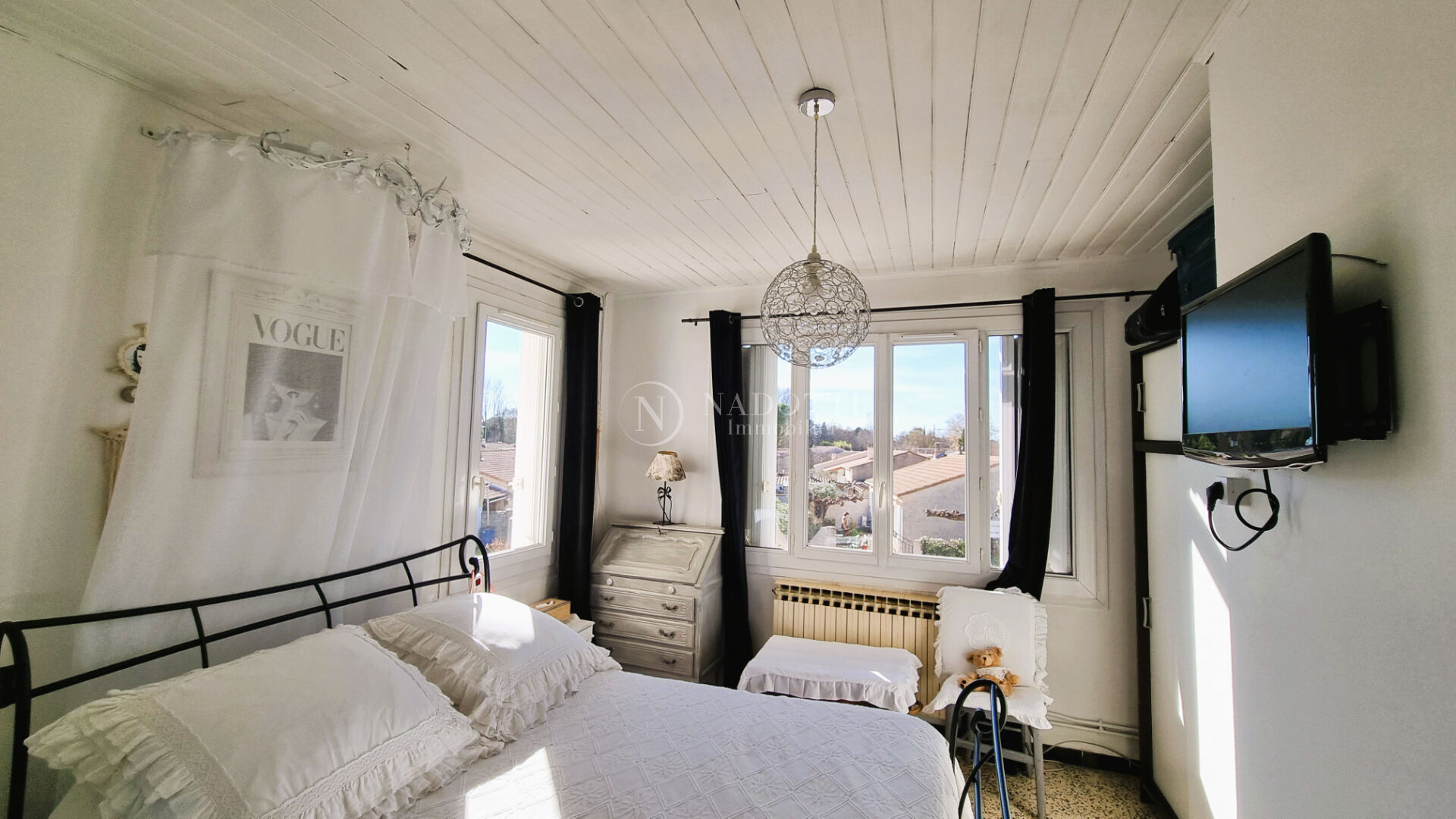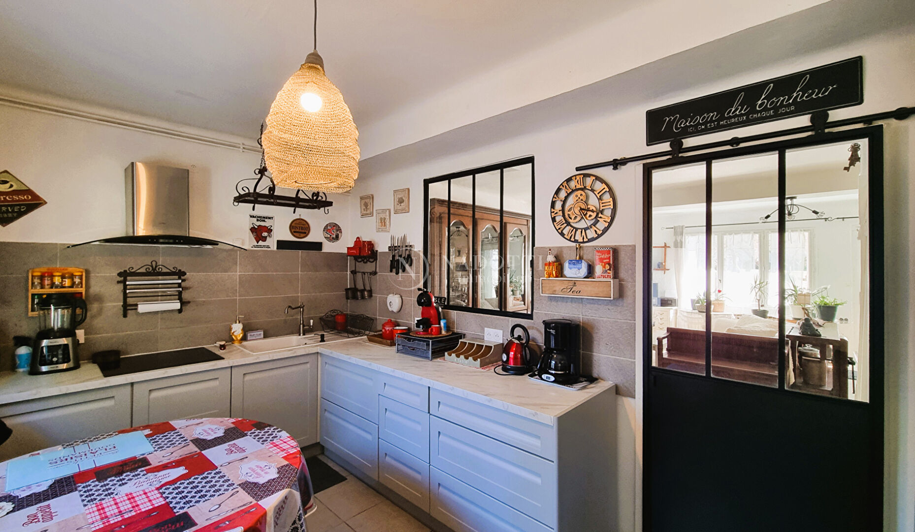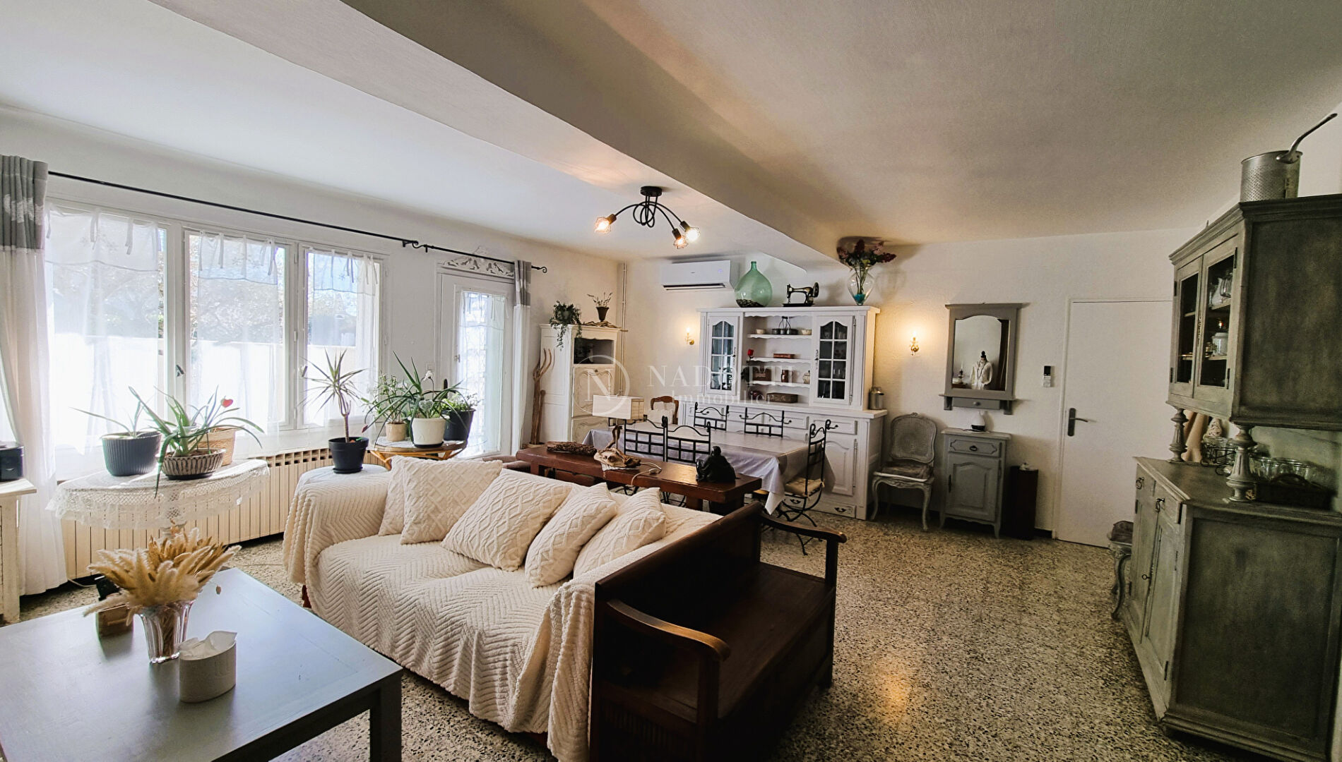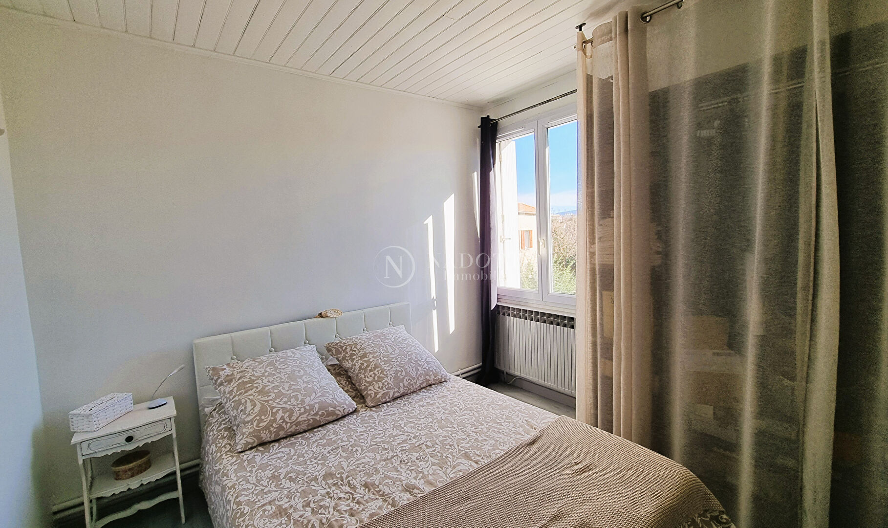 L'agence NADOTTI Immobilier vous propose une charmante villa, à proximité des commodités et établissements scolaires (écoles, collèges et lycées). Edifiée sur deux niveaux , cette maison très bien entretenue offre un cadre de vie agréable et intimiste. Au rez de chaussée, une lumineuse pièce de vie de 41 m², exposée plein sud, s'ouvre sur un joli jardin sans vis-à-vis. La cuisine, récente et entièrement équipée, est séparée du séjour par une élégante verrière à l'esprit industriel. A l'étage, vous trouverez trois chambres confortables ainsi qu'une buanderie, avec la possibilité d'aménager une quatrième chambre selon vos besoins. A l'extérieur, profitez d'un espace détente ombragé par un bel olivier et d'un atelier fermé, idéal pour vos rangements ou vos projets de bricolage. Une maison soignée et conviviale, parfaite pour acceuillir une famille cherchant calme, confort et praticité.