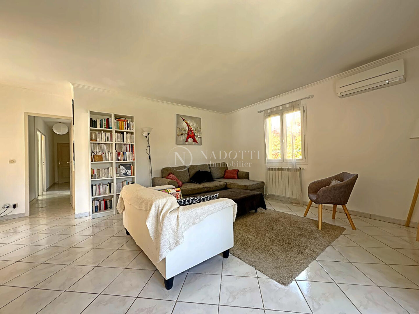 L'agence Nadotti immobilier a le plaisir de vous proposer à la vente cette charmante maison de plain pied, lumineuse, de 105m2 située au fond d'une impasse, au calme, sur un beau terrain plat de 700m2 avec garage, à proximité des commerces. Elle se compose d'un agréable séjour avec cuisine ouverte d'env. 40m2 offrant un bel espace de vie convivial et lumineux. Côté nuit, vous trouverez quatre chambres , une salle de bain ainsi qu'un wc indépendant. La maison bénéficie d'une climatisation réversible, du tout à l'égout.. aucun travaux à prévoir A visiter sans tarder !