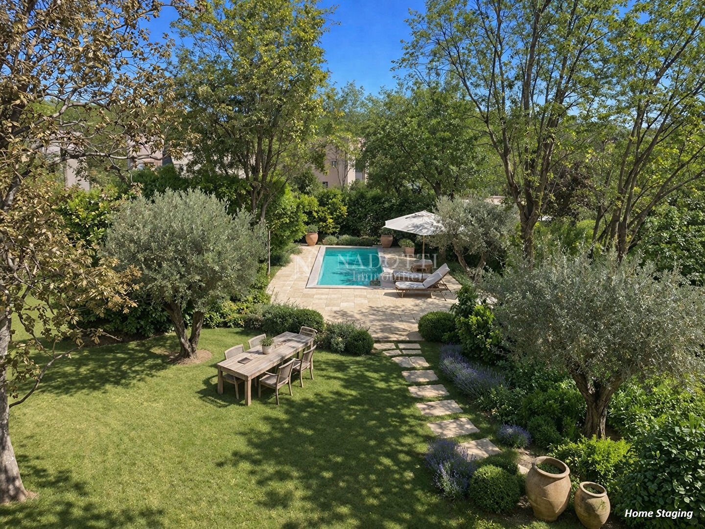 NADOTTI Immobilier, l'agence immobilière du Luberon, vous propose à la vente ce charmant mas d'environ 269m² . Alliant authenticité et cachet, cette propriété séduit par ses matériaux nobles, avec pierres et poutres apparentes qui lui confèrent un charme typiquement provençal. Au rez-de-chaussée, vous découvrirez une arrière-cuisine, une cuisine à aménager selon vos envies, une salle à manger ainsi qu'un séjour chaleureux avec cheminée et ascenseur, sans oublier un WC indépendant. Un demi-niveau accueille une chambre avec sa salle de bains privative et un accès direct au jardin par un escalier extérieur. Au premier étage, un palier dessert un WC indépendant, deux chambres en enfilade avec une salle d'eau commune, ainsi qu'une suite parentale composée d'une chambre avec ascenseur, d'un espace dressing et d'une salle d'eau avec baignoire et WC. Au deuxième et dernier étage, vous trouverez une cinquième chambre disposant de sa propre salle d'eau. La maison est conforme aux normes PMR. Ce mas a été partiellement rénové et offre déjà de belles prestations, tout en laissant la possibilité de prévoir quelques travaux pour révéler pleinement son potentiel. A l'extérieur, le mas bénéficie d'un magnifique jardin arboré de 2 460 m², agrémenté d'une piscine, d'une cuisine d'été et d'un garage. A environ 50 minutes de la gare TGV d'Avignon ou de l'aéroport international Marseille-Provence.