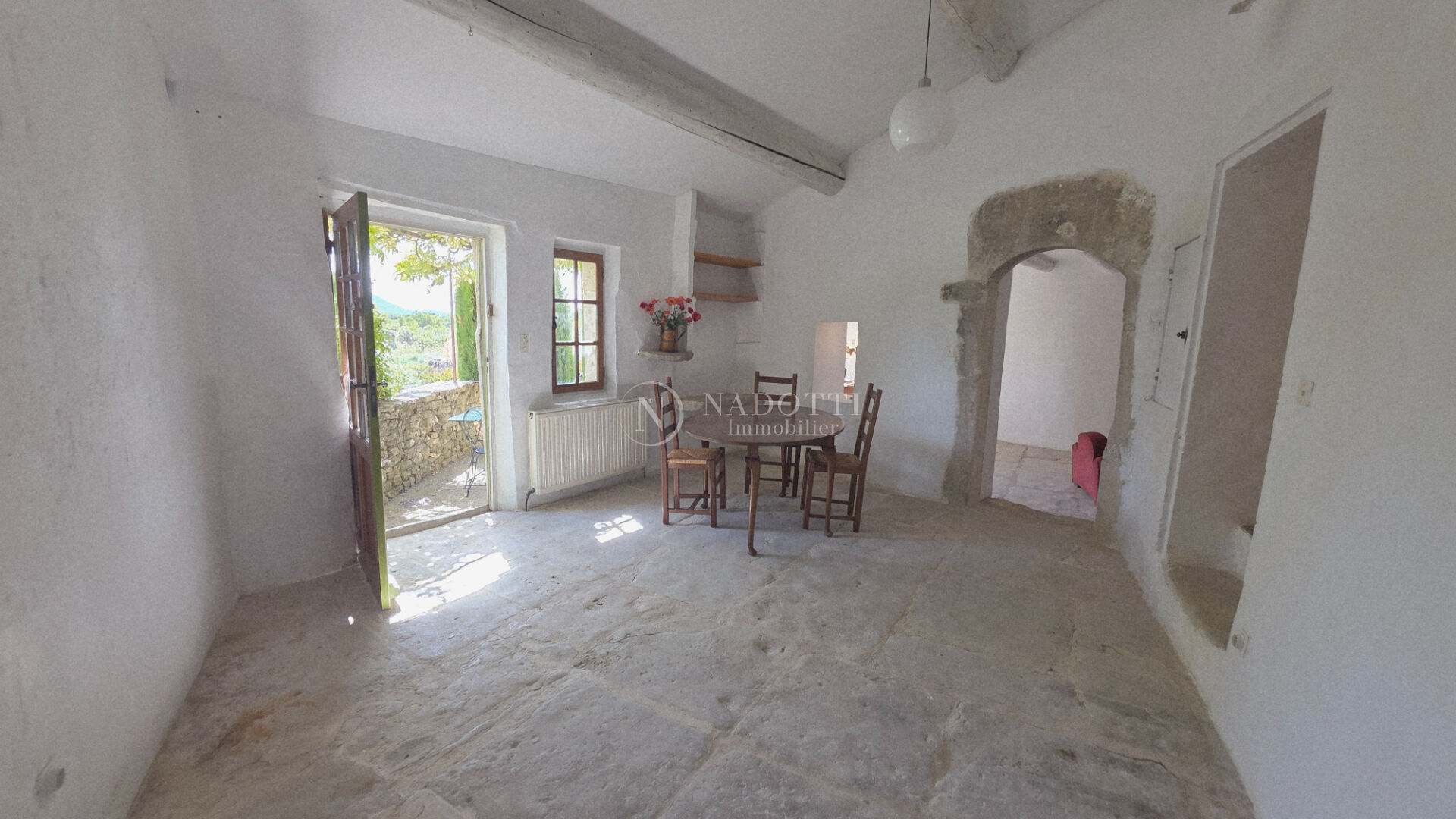 L'agence Nadotti vous propose à la vente cette magnifique propriété du XVIIIe siècle en pierre du pays, située en campagne non isolée de Gordes, dans un cadre idyllique avec vues imprenables sur le Luberon , les Dentelles de Montmirail et le Mont Ventoux. Ce mas de caractère se compose en rez-de-chausée : de deux grandes caves voutées dont une, aménagée en bureau, chauffée, une entrée, un espace pouvant faire office de chambre d'enfant et une chaufferie. Le premier étage accueille les pièces de vie : une entrée, un salon avec cheminée, une salle à manger ouvrant sur une agréable terrasse, une seconde salle à manger avec cheminée ainsi qu'une cuisine ouverte donnant sur une terrasse ombragée au nord, Une salle d'eau avec WC et une suite principale avec salle d'eau complète le niveau. Au deuxième étage, un espace bureau dessert une suite bénéficiant d'une belle terrasse tropézienne, ainsi qu'une chambre avec terrasse offrant une vue remarquable sur Gordes et son château. A l'extérieur, le charme opère immédiatement avec un jardin intimiste entièrement ceint de murets en pierre sèche. Vous profiterez d'un bassin-piscine exposé plein sud, ainsi que d'un espace de stationnement ombragé par un majestueux micocoulier au nord. Ce bien rare séduira les amateurs d'authenticité par son environnement paisible, son cachet et ses panoramas exceptionnels.