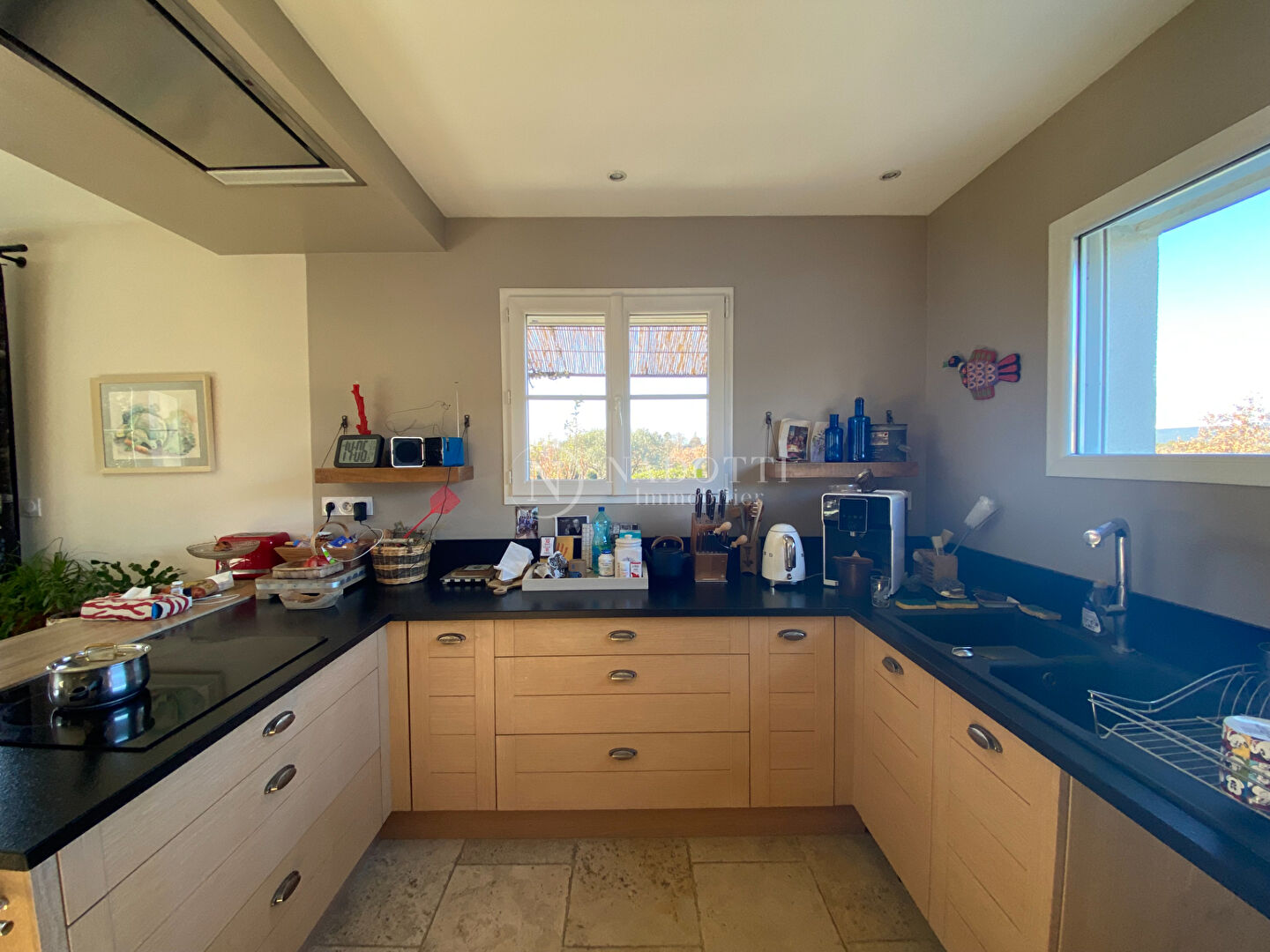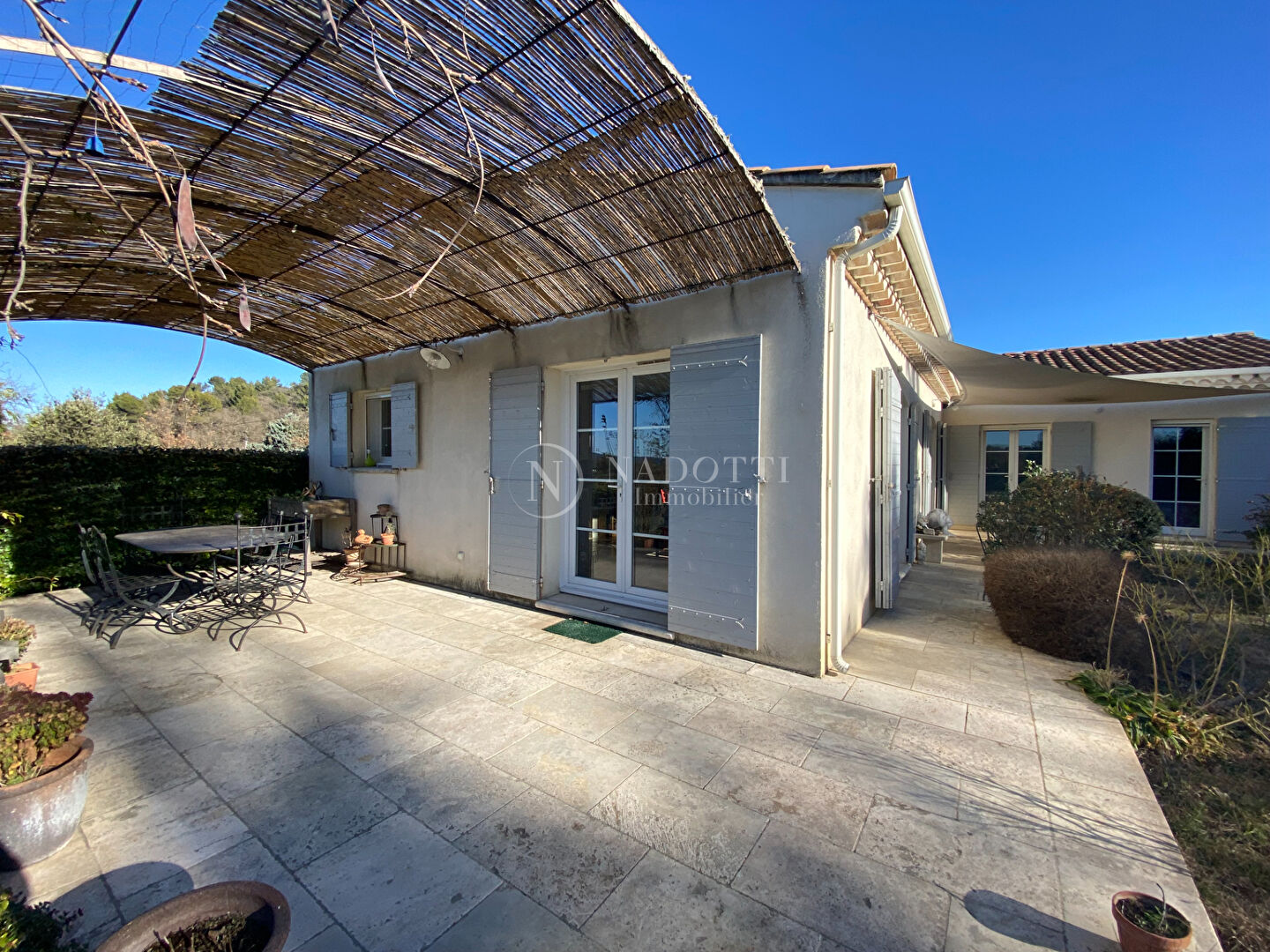 Nichée dans un environnement calme et recherché, cette charmante maison de plain-pied de 144 m² vous séduira par ses volumes généreux et son cadre verdoyant. Implantée sur un terrain arboré de2 000 m², elle offre un véritable art de vivre provençal. Dès l'entrée, vous découvrirez un espace fonctionnel doté de nombreux rangements. Un dégagement dessert trois chambres confortables avec placards, ainsi qu'une salle de bains équipée d'une baignoire et d'une douche. Vous trouverez également une suite parentale constituant un véritable cocon : chambre lumineuse avec vue sur le jardin et accès direct à la terrasse par une porte-fenêtre, dressing indépendant et salle d'eau privative. Le coeur de la maison se compose d'une spacieuse pièce de vie, baignée de lumière, alliant convivialité et chaleur grâce à son poêle à bois. La cuisine ouverte, moderne et fonctionnelle, prolonge harmonieusement cet espace. Un cellier vient compléter l'ensemble. Côté annexes, vous bénéficierez d'un grand garage avec mezzanine, offrant de belles possibilités de rangement ou d'aménagement. A découvrir sans tarder !