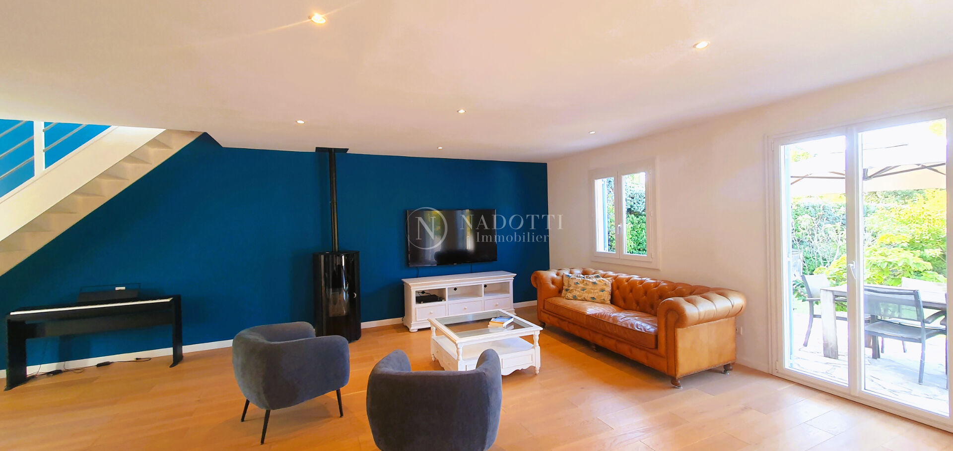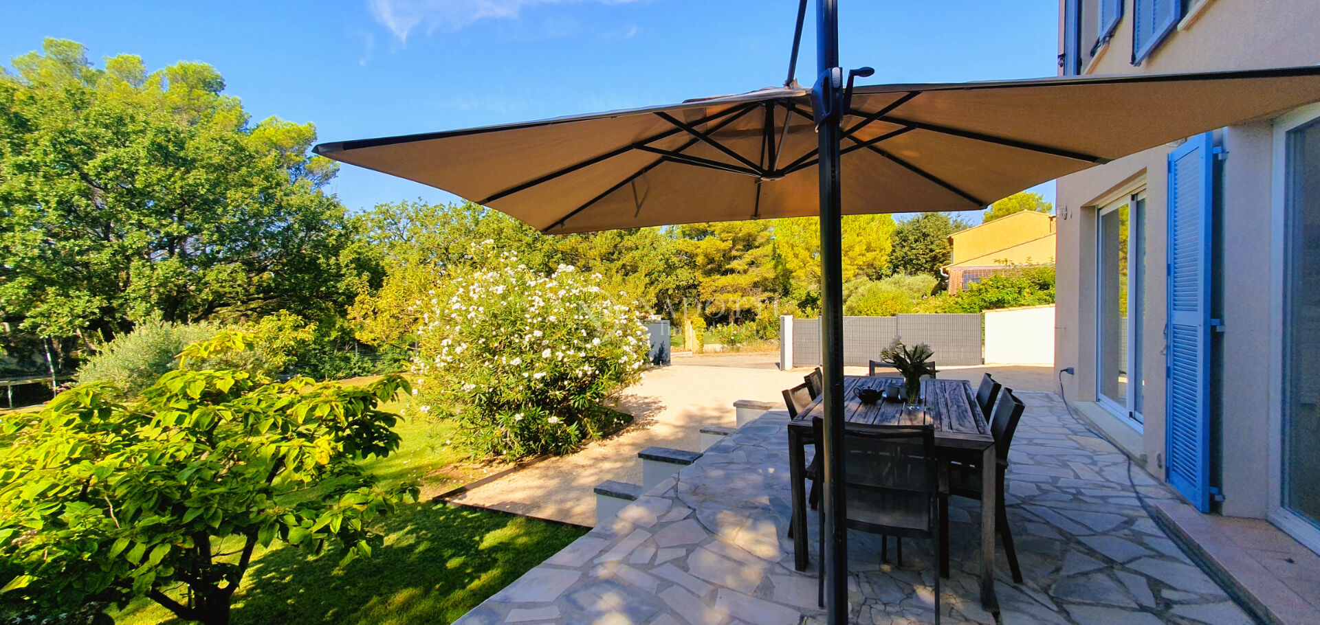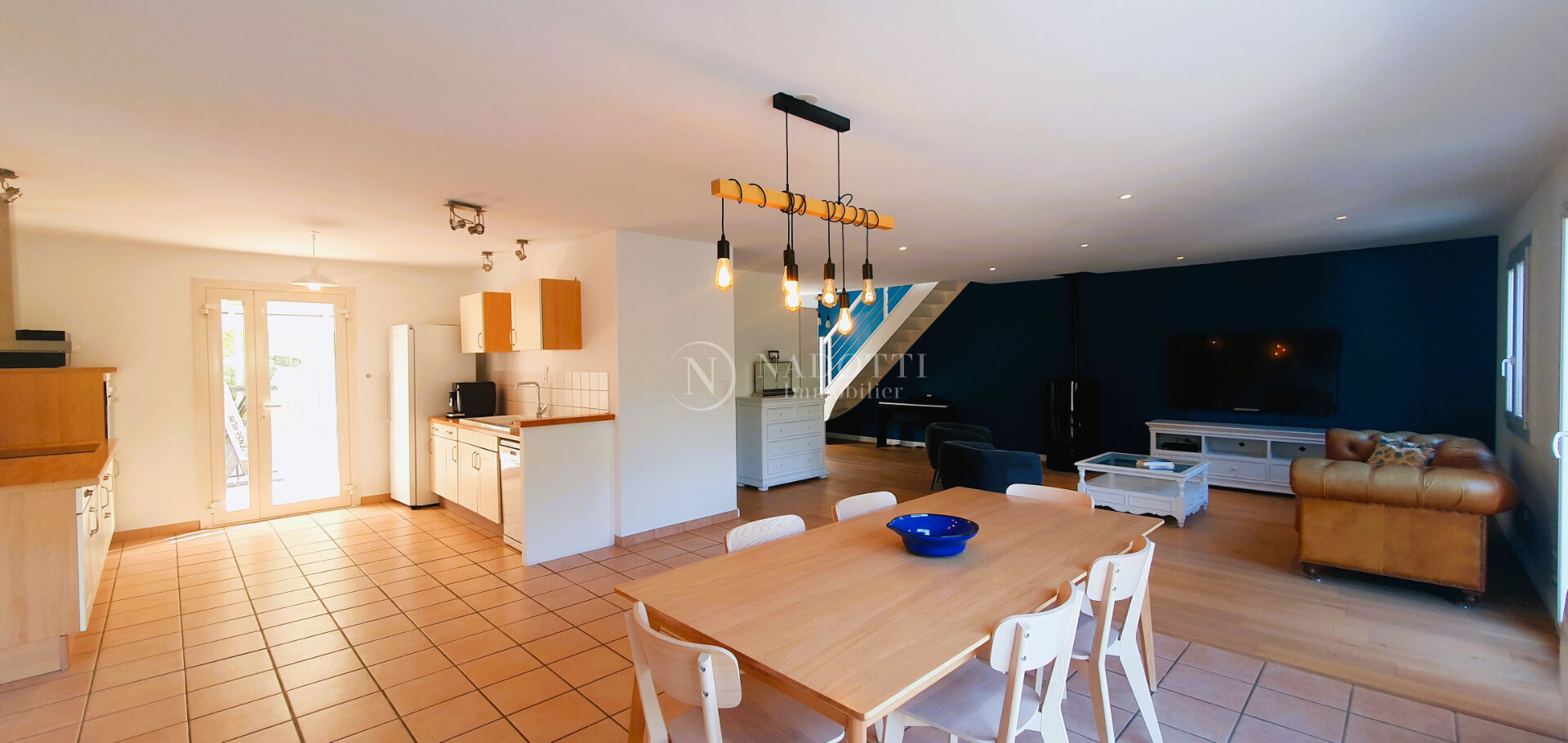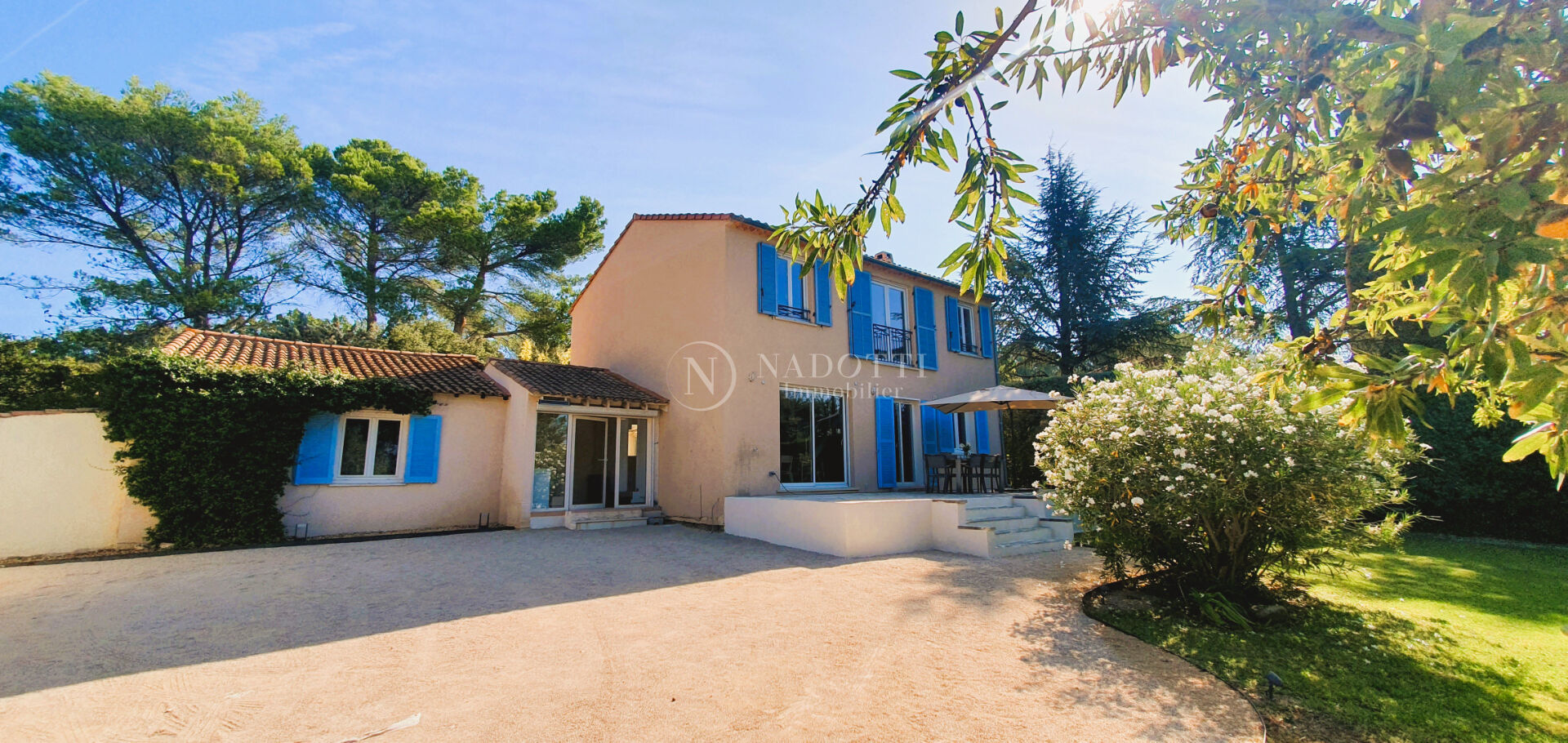 Sur la colline de Velleron, magnifique village provençal, dans un environnement calme, l'agence Nadotti Immobilier de l'Isle sur la Sorgue vous propose une agréable villa de 190 m² très lumineuse, avec garage, jardin clos et arboré de 1185 m² piscinable. La maison est composée en rez de chaussée d'une grande pièce de vie avec cuisine ouverte, d'une surface d'environ 70 m². Lumière traversante avec vue dégagée sur le jardin et accès terrasse sud. Sur ce même niveau, on retrouve également une suite parentale avec salle d'eau, des toilettes et un bureau, ainsi qu'une seconde salle de bains avec baignoire, douche et toilettes. L'étage, réservé exclusivement au coin nuit, s'articule autour de 4 grandes chambres avec dressings et toilettes. Dépendances : un garage et un cellier. Dans un havre de paix, sans être isolée, cette maison est en mesure de recevoir une grande famille mais s'adapte également à un couple. On the hill of Velleron, in a magnificent Provençal village, in a quiet environment, the Nadotti Immobilier agency in Isle sur la Sorgue offers you a pleasant, very bright 190 sqm villa with a garage and a 1185 sqm enclosed and wooded garden with the possibility of adding a swimming pool. The house is composed on the ground floor of a large living room with an open kitchen, with a surface area of approximately 70 sqm. Light floods in with unobstructed views of the garden and access to a south-facing terrace. On this same level, there is also a master suite with a shower room, toilet, and an office, as well as a second bathroom with a bathtub, shower, and toilet. The upper floor, reserved exclusively for the sleeping area, is arranged around 4 large bedrooms with dressing rooms and toilets. Outbuildings: a garage and a storeroom. In a haven of peace, without being isolated, this house is able to accommodate a large family but is also suitable for a couple.