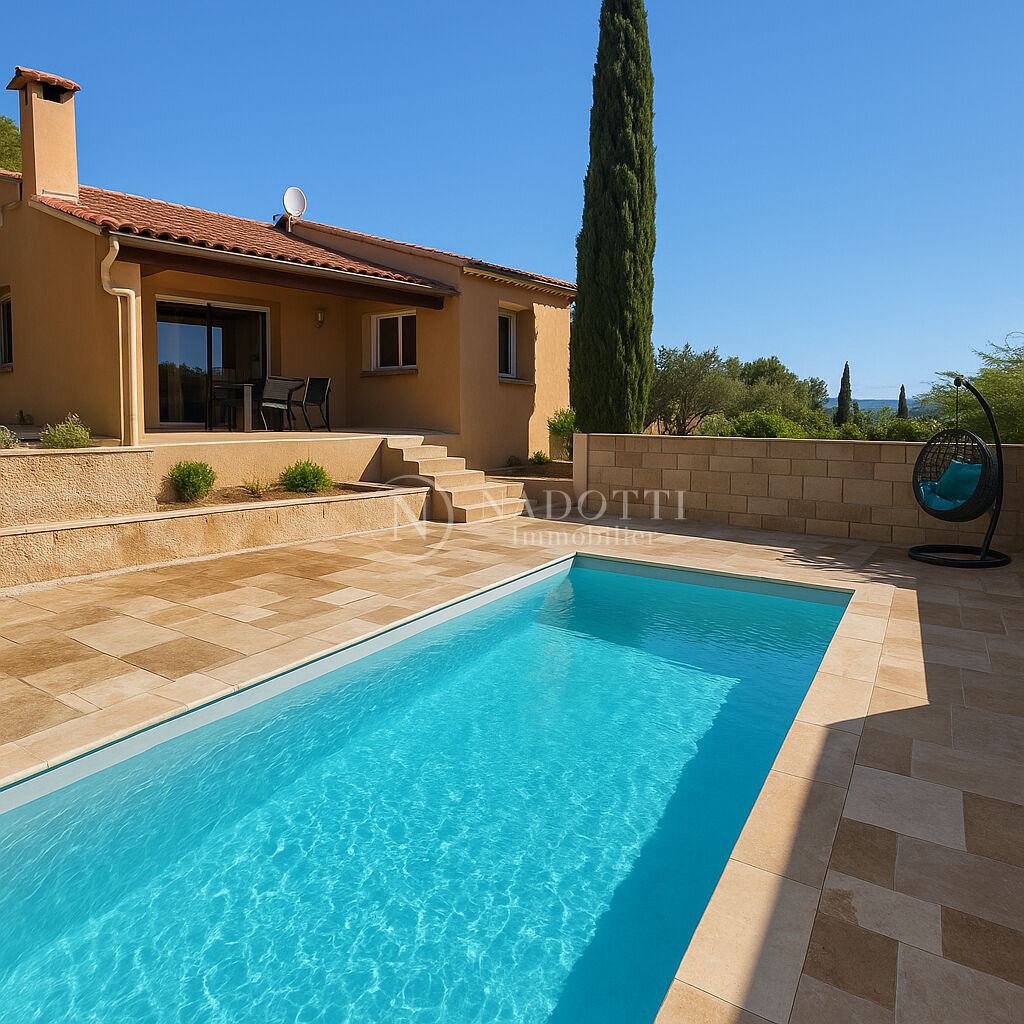Sur les hauteurs, villa plain-pied rénovée avec piscine garage et dépendance
