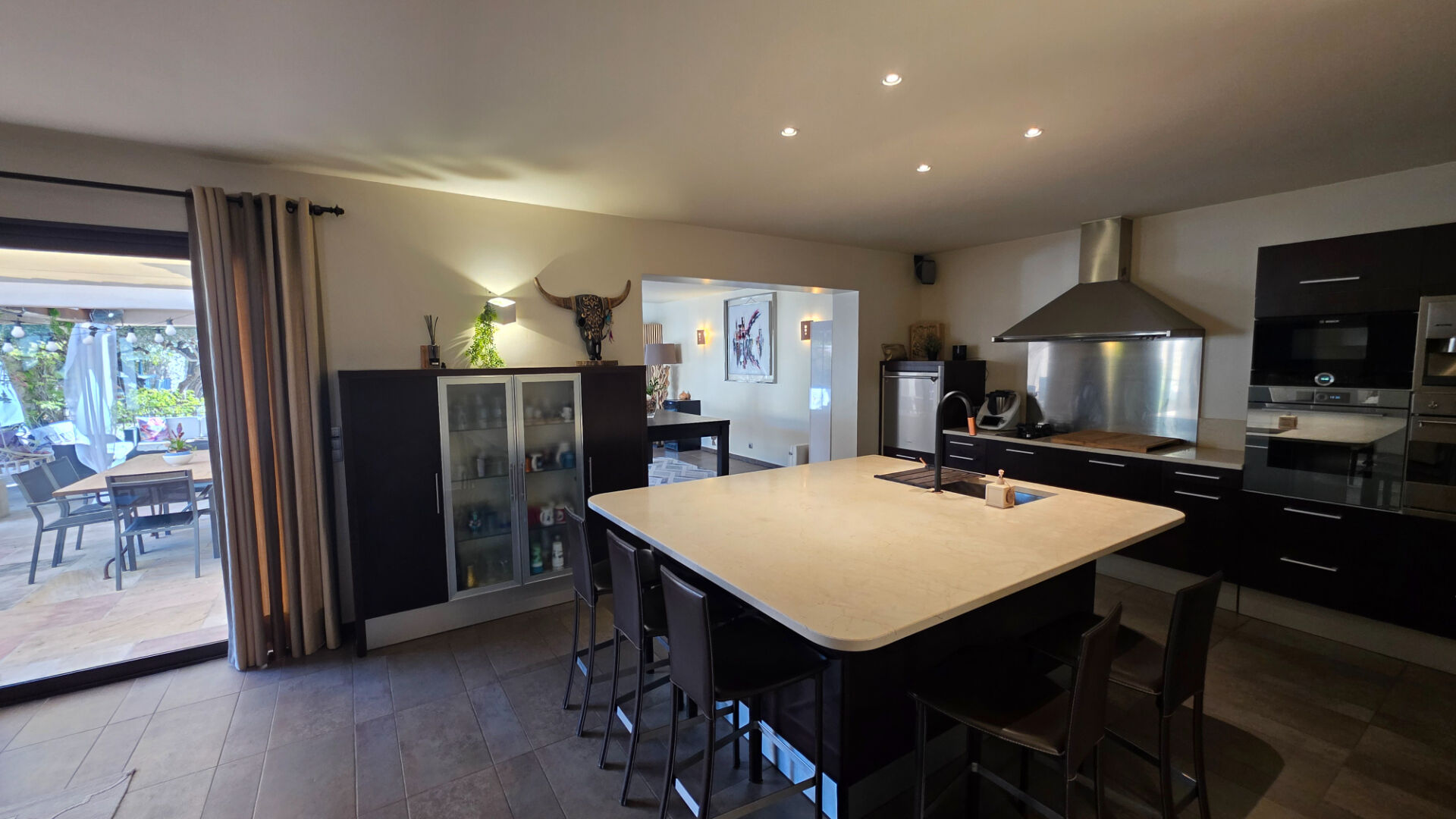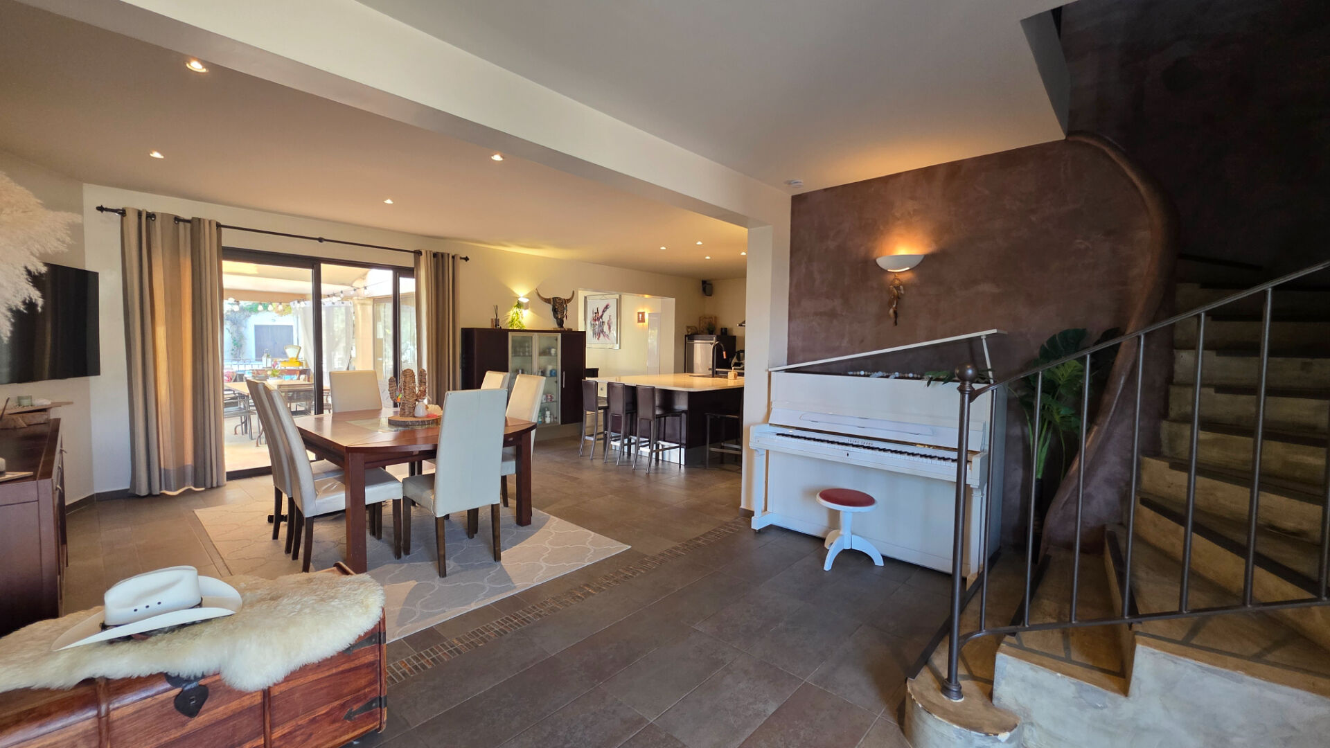 Dès l'entrée, un hall généreux dessert un premier salon accueillant ainsi qu'une vaste pièce de vie baignée de lumière, ouverte sur la terrasse et le jardin grâce à de grandes baies vitrées. La cuisine sur mesure, mêlant chêne massif et pierre néolithe, confère à l'ensemble élégance et authenticité. La suite parentale, située de plain-pied et dotée d'un accès direct au jardin, offre un lieu intime très appréciable. Une buanderie vient compléter ce niveau. A l'étage, trois chambres confortables prolongent l'esprit familial de la maison, dont une seconde suite disposant de sa propre salle de bain et d'une terrasse panoramique. Une salle de bain supplémentaire garantit un confort optimal pour les invités. A l'extérieur, chaque aménagement est conçu pour profiter du climat provençal : Spacieuse terrasse équipée d'une cuisine d'été Piscine contemporaine bordée d'un jardin paysager facile à entretenir Garage fermé et auvent pouvant accueillir plusieurs véhicules Une adresse rare, située à proximité de Gordes et des villages emblématiques du Luberon.